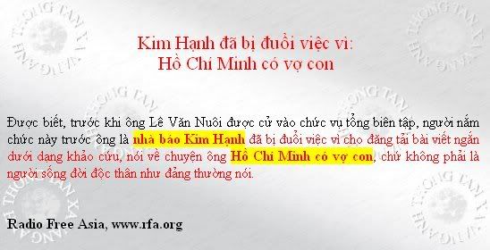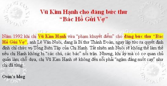 Năm 1992 bà Vũ Kim Hạnh bị xem là “phạm khuyết điểm” khi cho đăng một số tư liệu chưa được công bố liên quan đến đời tư của Hồ Chí Minh. Ông Lê Văn Nuôi, đang là Bí thư Thành Đoàn, lập tức ra quyết định đình chỉ chức vụ Tổng biên tập của bà.
